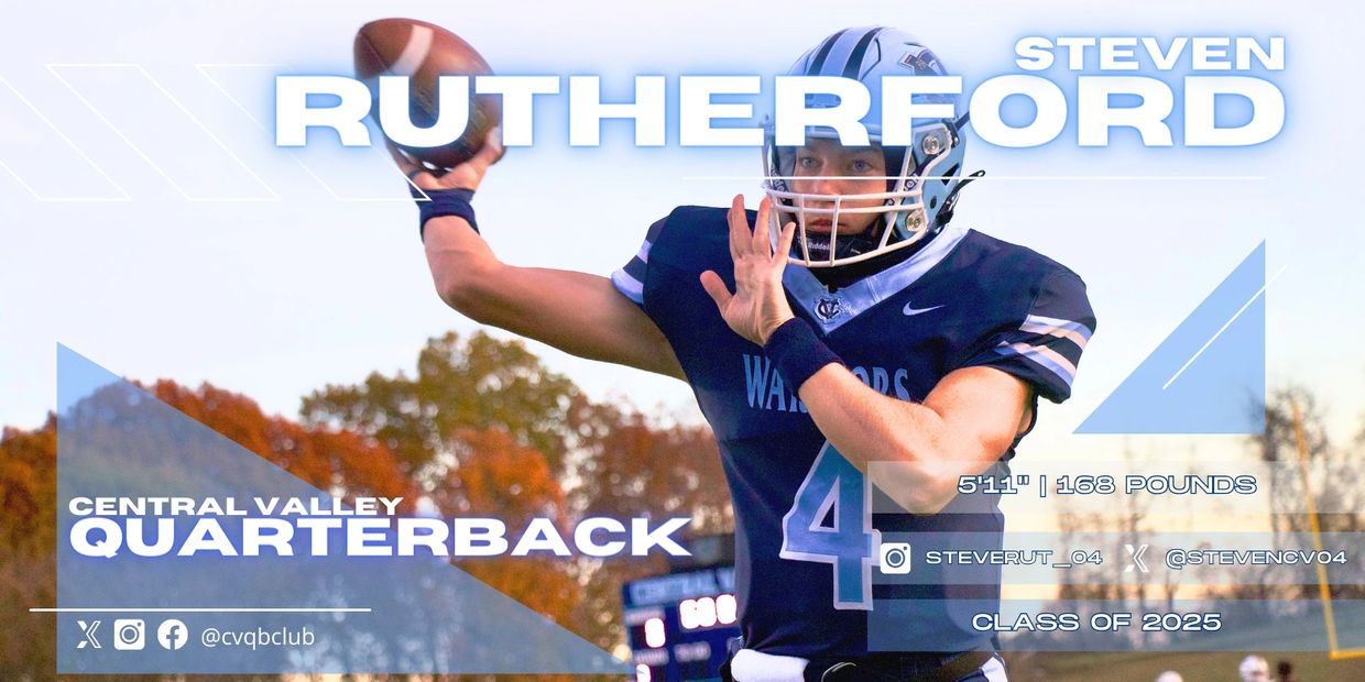 🏈💥 Meet the future of the game – Steven Rutherford, Class of 2025 QB! At 5'11" and 168 pounds, this pocket maestro is all about precision and poise on the field. With the ability to scramble and unleash some serious downfield magic, Steven's ready to take his game to new heights! Here's to building off a solid junior season – watch this space! 🔥